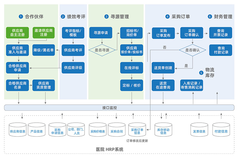 KTSRM对医疗机构有着价值,可以通过合作伙伴、绩效考评、寻源管理、采购订单、物流库存、财务管理六大主体业务处理流程环节搭建与供应商协作平台,实现供应商生命周期管理,在线协同提高合作效率,达到降本增效的作用。