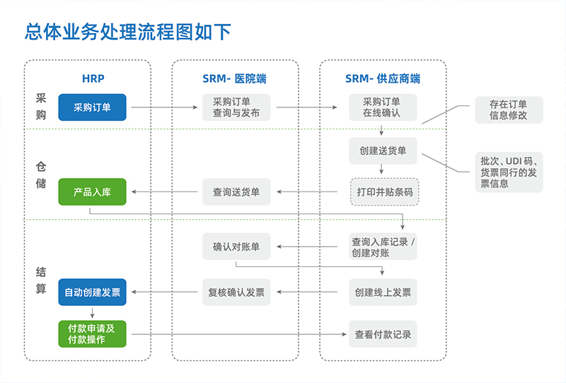 医疗机构可以通过KTSRM平台打通供应商系统与医院运营系统,实现订单、送货单、发票等对接,提高沟通效率。通过实时记录采购、寻源、库存等相关交易数据,为运营分析提供有力支撑。