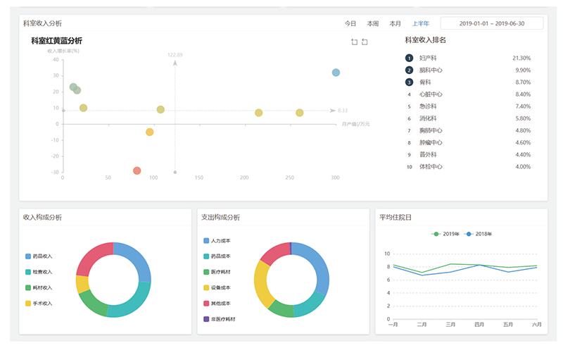 在大数据信息化时代,更多时候要看如何让数据带来更多价值,不同数据来源是非常多样化的,通过提升数据库的能量与潜力,才能为医疗机构带来更强劲的发展动力,帮助其更快速、更有效的利用数据为医疗服务。KTHRP系统内置100多个医疗行业关注的运营分析指标,提供更全面的分析模型及决策依据。多主题、多维度实现医疗机构科室不同需求层次的运营数据分析,KTHRP另外还提供了基于开源数据平台为医院管理层及时展示运营“驾驶舱”,为医疗机构更好的“驾驶”医院运营提供助力。
