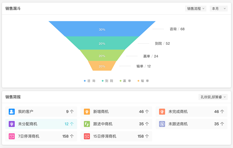 KTHCRM可以通过数字化手段实现市场获客,进行可视化的数据分析,KTHCRM能够统计多类型多渠道的获客方式,为营销提供较为精准全面的数据支持,系统可以对多维度的数据进行全方位立体分析,帮助医疗机构了解企业经营实况,协助管理层做出更科学有效的决策。