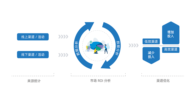 数据集中管控是将线索收集后统一进行用户分类分级、记录投入产出的过程。而集中管控的另一个目的也是为了数据可以快速拆分,减少搜索客户的时间成本、市场活动投入和产出情况,集中和拆解可以快速的发现市场管理背后的真相,分辨客户需求和投放渠道的对与错,为下一步科学决策提供支持。