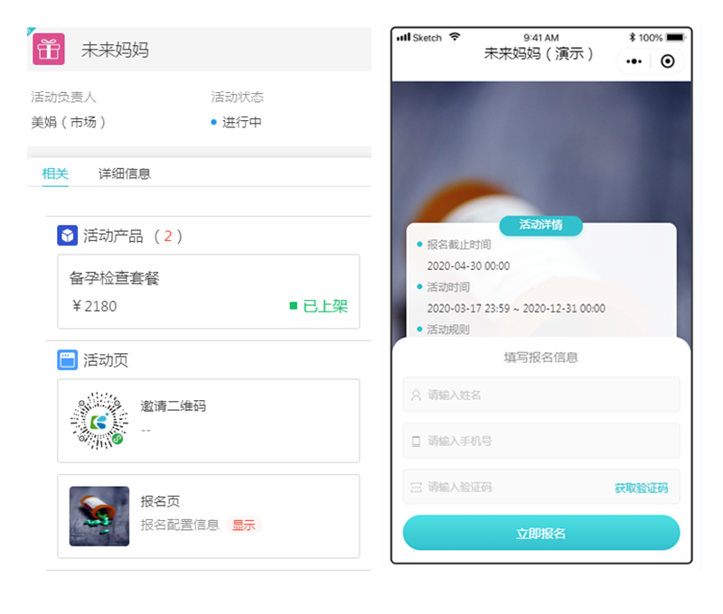活动场景应用:KTHCRM可记录每场活动情况。活动开始前,医院员工可以下载邀请页海报,发送到朋友圈邀请客户参加活动;客户可以扫码打开小程序、H5页面进行报名。活动结束后,系统可以转化成线索名单。另一方面,客户也可以通过活动推送平台参与促销活动,记录促销的时间和用户领用后的使用情况。有效分析每一次市场活动的投入产出比,根据与市场活动参与情况和回款情况做统计,实现可视化数据管理。