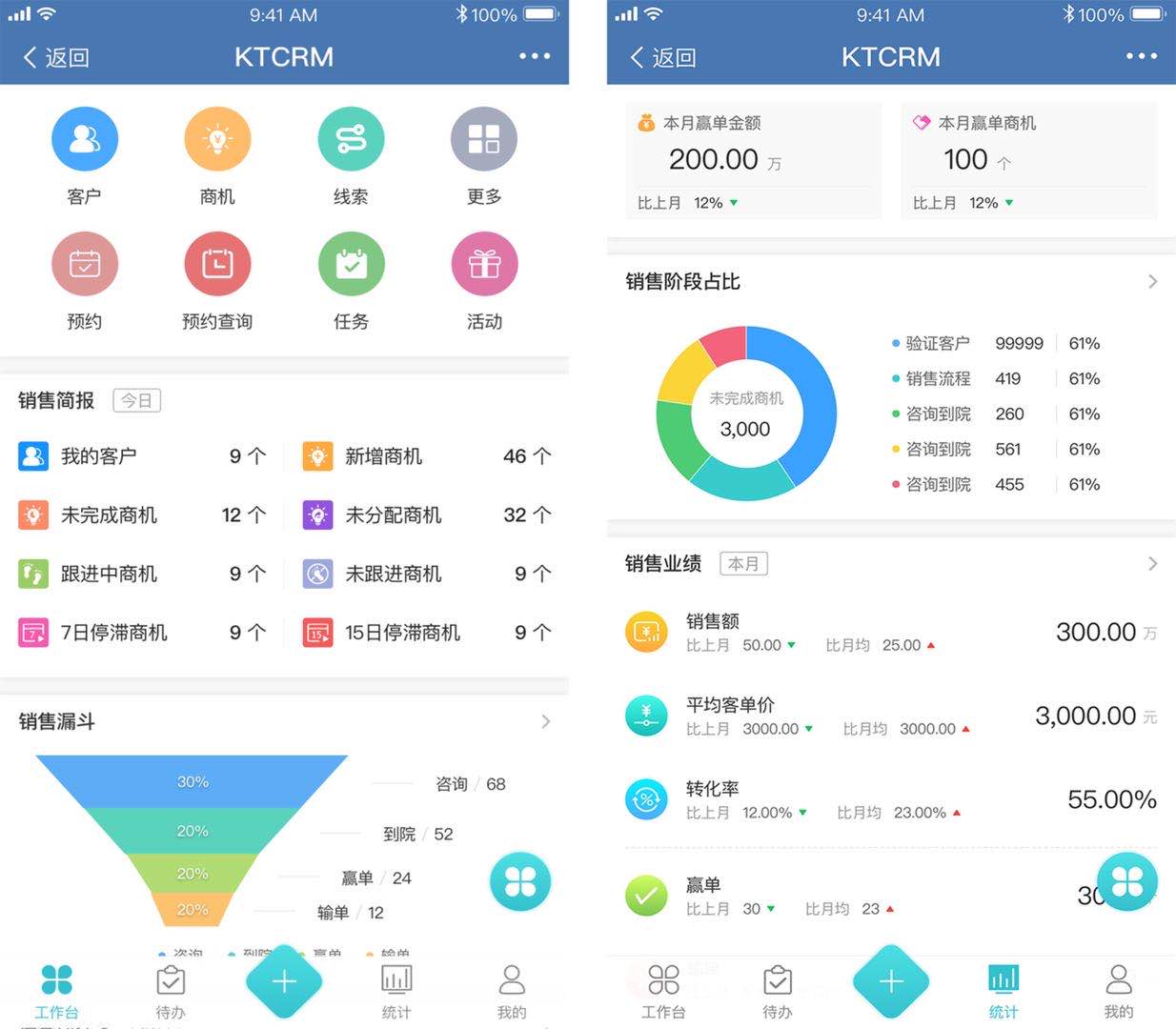 KTHCRM微信小程序的开发对医疗行业确实具有非常重要的价值和意义,而且使用起来方便快捷,医疗机构将小程序也开发起来,对医院客户关系进行更高效的精细化管理,将有助于在竞争行业中脱颖而出。康博嘉用优质的管理方式和靠谱的产品技术,整合PC端KTHCRM和移动端解决方案,实现多渠道数据管控和信息共享,把“以客户为本”的观念做精、做细,完善医疗行业商业闭环。