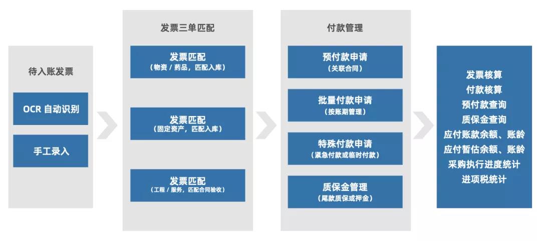 通过深化RPA应用,康博嘉HRP可自动化处理重复耗时任务,如报税、收款稽核、月结检查、健康报告等,助力财务改进日常繁琐工作; 通过系统与智能硬件结合,例如,用OCR技术实现发票查重、连号、验真的批量智能识别,HRP可帮助医院减少人工复核工作,提高员工处理报账业务的效率与准确度。 3.供应链全流程管理