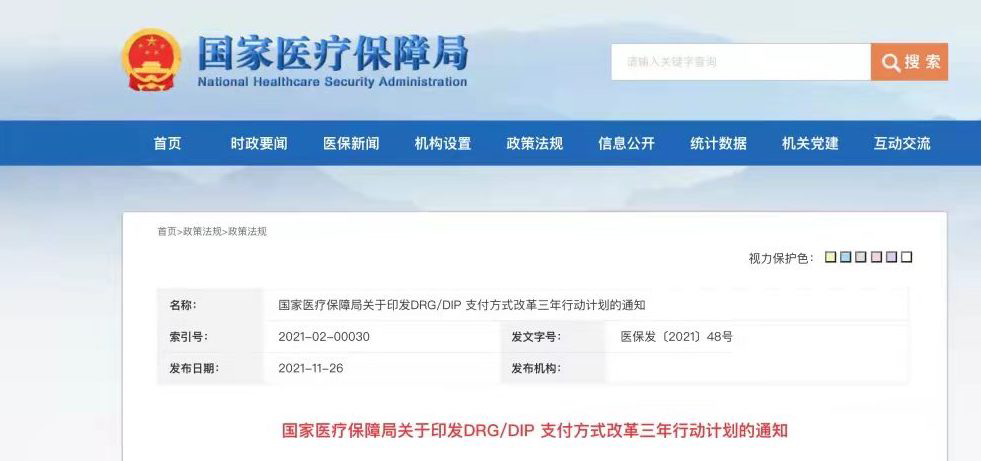 2021年11月26日,国家医疗保障局发布《关于印发DRG/DIP支付方式改革三年行动计划的通知》(以下简称《通知》)。《通知》强调以加快建立管用高效的医保支付机制为目标